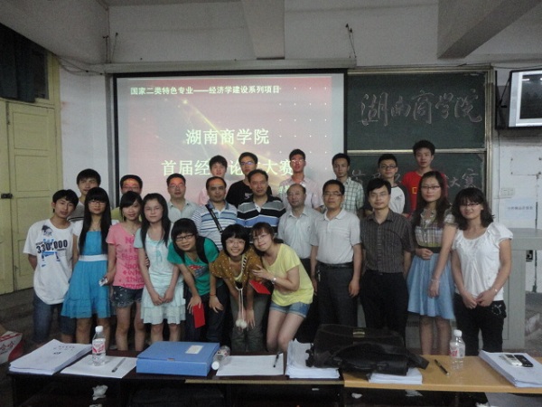 6月16日晚,由经济与贸易学院经济系承办的湖南商学院首届经济学论文大赛决赛在B106圆满落幕。本场比赛邀请到经贸学院院长刘天祥、副院长刘乐山、经贸院党总支书记彭炳忠教授,以及经济系主任刘战平、副主任尹碧波老师和经济系邓柏盛老师组成评委团。