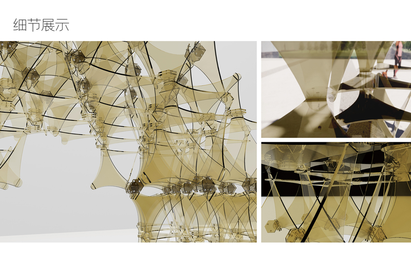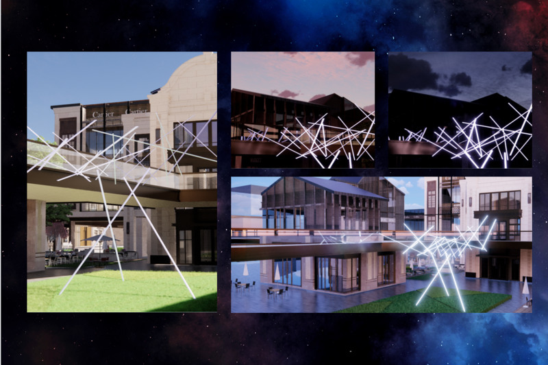 作者:王康敏 陈明作品简介:《2077》赛博朋克风格商业空间公共艺术品提取赛博朋克风格中高科技、金属材料、反重力的重点元素,利用张拉整体结构来体现其“反重力漂浮”的特点,展现“因资源消耗过度导致的环境退化、生活质量降低”为内涵的赛博朋克的风格,强调生活品质的重要性。