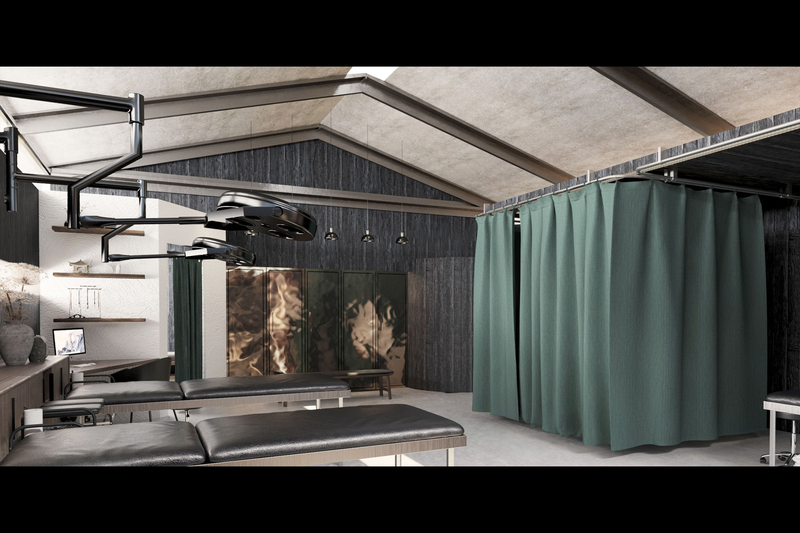 作者:袁玟清作品简介:该作品将代表墨汁融入皮肤的碳化木与原木色结合,搭配石块的自然肌理,抽象还原出上千年前的原始先民通过刺进皮肤的图腾将自己与万物联系的景象,刺青的承载者们借助空间,能够在此回归到文明最本质的光环中去。