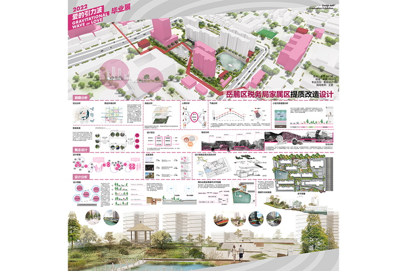 作者:李想 刘行威作品简介:本设计项目以湖南省长沙市岳麓区税务局家属区为例,基于后疫情环境下的可持续发展设计原则,设计通过雨水花园、去共享化、5G科技研究分析等改造措施,改善场地在雨洪水管理、环境美化、生物多样性提升等生态系统方面的问题,构建可持续城市社区的生命景观新地标。