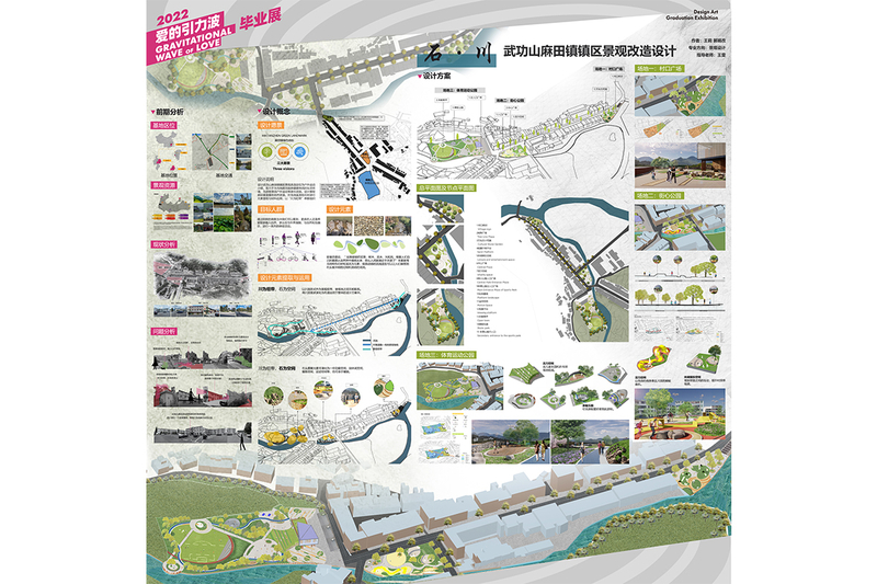 作者:谷妍、江丽作品简介: 位于武功山脚下的麻田镇有着丰富的资源禀赋,绿水青山是麻田镇乡村的宝贵财富。我们将运动元素融入到本次对于镇区内建筑及景观的改造上,从地域文化、符号语言及色彩表达三个维度出发,一改小镇里沉闷的环境,使气氛更加活泼。充满设计感的不规则建筑及景观设计,让人们觉得充满活力,缓解压力。