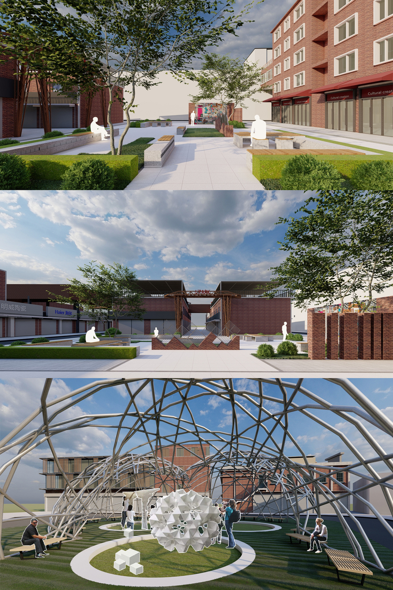 作责者:张苏杭、辛祥龙作品简介:建材市场景观方案规划设计在秉承湘潭市雨湖区城市规划理念的前提下,意将建材市场景观设计成一座集商业、休闲、展示、文化交流、物流的多功能工业创意园区。以旧仓房和仓库为主体,因它宽敞的空间和低廉的租金,或闲置的仓房,会成为多功能工业创意园区的滋生之地,本项目依托于建材市场的经营模式,根据该模式打造与之呼应的景观体验。