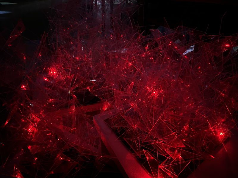 作者:张淑琦 何姣作品简介:选取“文夕大火”为背景进行系列的装置设计和衍生品的创作。让“文夕大火”的历史在经过时间的埋没后重新散发出它应有的光辉。以红色为基调,用几何形的表现方式,将事物立体化表现出来,在透明的立方体内,将文夕大火被烧毁的建筑通过不同的几何面拼接来呈现,赋予装置情感,带给人们视觉冲击感。