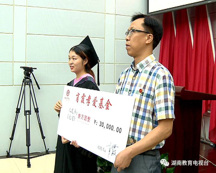 今天上午,湖南商学院北津学院工商管理专业毕业生肖霞,拿出自己结婚的礼金三万元捐给学校,成立肖霞孝爱基金,用来帮助孤寡老人和留守儿童。
