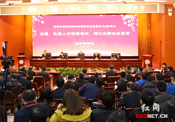 红网长沙1月7日讯(记者 刘怡斌 通讯员 巢进文)1月7日,湖南省普通高校教学管理专业委员会2016年年会在湖南商学院召开。来自国防科大、中南大学、湖南大学等全省41所高校的相关负责人齐聚一堂,围绕“改革人才培养模式,深化创新创业教育”的主题展开深入交流探讨。