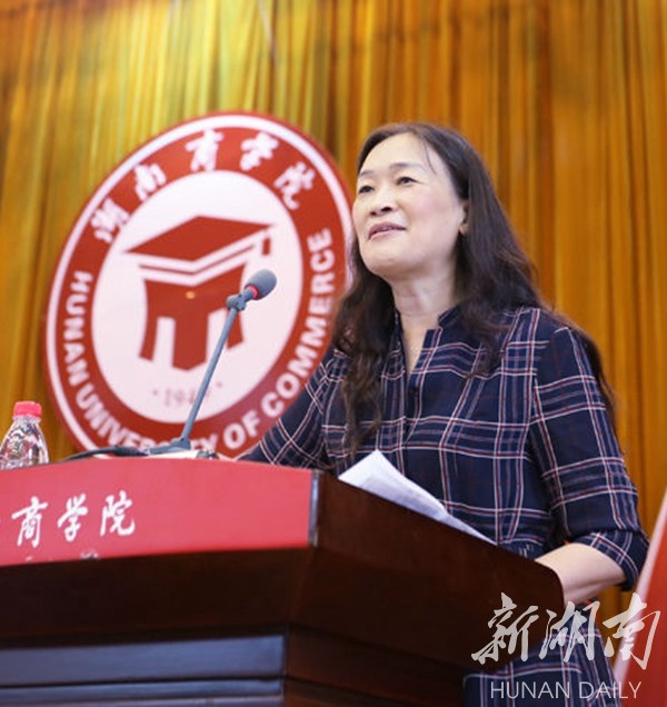 (陈晓红在湖南商学院2016级新生开学典礼上讲话。)
