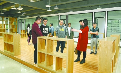 4月19日,创业教育中心老师带学生参观新建设的创客中心。去年11月,湖南商学院投资150万元将校内一所空置厂房装修改建为创客中心,为创业初期的学生提供免费的办公场地,帮助他们减轻创业初期的经济压力。创客中心预计5月份可投入使用。