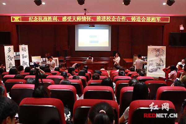 针对这批珍贵的抗日题材作品,湖南商学院旅游管理学院与湖南金舟文化艺术有限公司共同举办“纪念抗战胜利,感受大师情怀,促进校企合作,铸造会展湘军”名家大师抗战书画作品文创策划大赛。比赛现场,各参赛队伍依次路演,精彩纷呈,有的将书画作品与服饰设计相结合,有的将书画故事开发成动漫作品,充分展现了当代大学生的敏锐思维和奇思妙想,让爱国情怀插上了创意的翅膀。