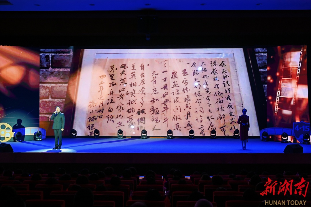 光影变换里,“长夜星光、无名丰碑、无声惊雷、潮涌湘江”四个篇章依次上演,影视片段穿插主题宣讲,历史与现实交替呈现。《永不消逝的电波》《沉默的荣耀》等红色影视作品画面一出现,迅速抓住全场目光,李白、吴石等一个个感人至深的先烈故事催人泪下。