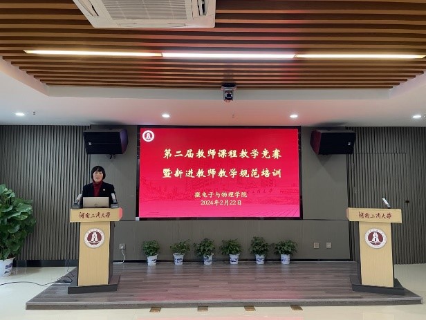 新学期伊始,微电子与物理学院举行第二届课程教学竞赛暨新进教师教学规范培训会议。教务处处长刘导波教授到场指导,竞赛由学院党委书记唐爱国主持,学院全体青年教师参加了比赛。