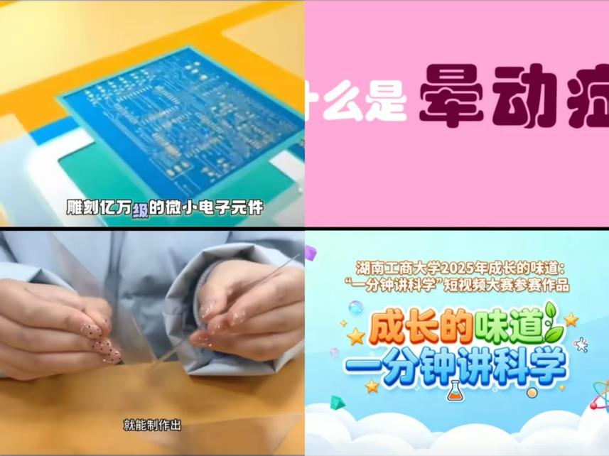 为深入贯彻落实习近平新时代中国特色社会主义思想,推动跨学科融合与科学文化传播,营造崇尚科学、勇于探索的校园文化氛围,由湖南工商大学校团委主办,微电子与物理学院承办的2025年大学生文化艺术节“成长的味道‘一分钟讲科学’短视频大赛”近日圆满收官。本次大赛面向全校本科生、研究生征集作品,共收到来自各学院的42条创意短视频,以“短而精、趣且深”的形式展现了青年学子对科学知识的独特解读与传播热情。