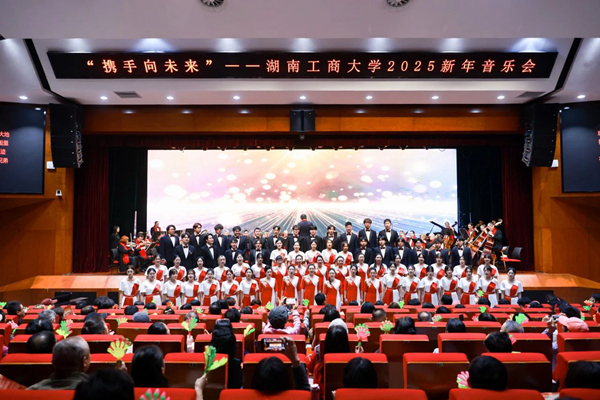“至诚至信,为实为新。薪火相传,共铸荣光……”最后,校领导登台与师生齐声唱响《湖南工商大学校歌》。本次音乐会也在迎接新年、扬帆起航的热情喜悦中圆满落下帷幕。 热情的歌声唱响新年喜悦,跃动的音符编织美好未来。观看新年音乐会的同学们沉醉在这一场高水平的音乐盛宴中,畅谈观看感悟、展望新年憧憬。 前沿交叉学院的唐佩同学表示:“2025新年将至,‘携手向未来’新年音乐会宛如一场璀璨的文化盛宴,激励着我们在知识的海洋中勇往直前,鼓舞着我们在学术领域勇攀高峰。学校高质量发展照亮了我们前行的路,我们也将不负学校期望,潜心学习、刻苦钻研,以优异的成绩回馈学校的精心培养,与学校携手同行,以更加昂扬的姿态迎接2025年的挑战。” 数学与统计学院的彭伟同学表示:“新年音乐会让我感受到艺术的震撼和文化的交融,俄罗斯交响爱乐乐团的精彩演出,给整场晚会增添了浓厚的国际氛围。音乐会不仅让我领略到世界级水准的交响乐,也让我感受到学校在文化建设上的全球视野。作为湖工商学子,我深感自豪,同时也将激励自己更加勤奋地学习,努力为未来的多元发展贡献力量。” 法学院的冯佳玮同学表示:“音乐会曲目中西结合、丰富多彩,将音乐的魅力展现得淋漓尽致,也让我们感受到了学校的蓬勃发展和创新精神。通过音乐的力量,也进一步激发了我们对个人梦想和学术追求的热情。这场音乐会不仅是对学校办学成就的庆祝,更是对未来的再展望,激励着我们与学校共成长,携手创造更加辉煌的明天。” (文/张高阳 图/校融媒体中心) 相关新闻