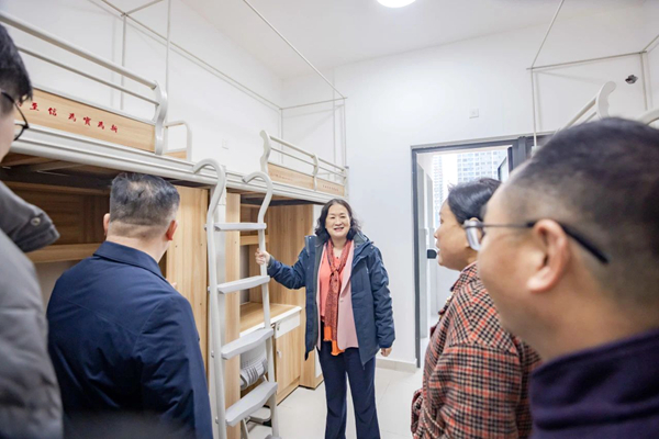 在月亮岛校区,校领导一行检查了立德楼(新工科教学实验中心楼)、弘济楼(食堂、大学生活动中心、游泳池等)、弘仁楼(学生公寓A栋)等新项目建设成果。高端大气的办公会议区域、宽敞明亮的教学科研区域、温馨舒适的学习生活区域、功能完善的室外活动区域等,以及眺望窗外即可一览湘江美景和海归小镇、月亮岛湘江大桥、月亮岛公园等的良好视野,让大家频频点赞。 陈晓红书记充分肯定了南校区、月亮岛校区各项目取得的建设进展成效。她表示,学校坚持“一切为了师生、为了一切师生、为了师生的一切”,持续打造“七大工商”品牌,十年建设发展让校园实现美丽蝶变,赢得社会各界的广泛赞誉。此次建设的项目将进一步推动学校办学综合实力迈上新台阶,再一次提升师生的获得感、幸福感。同时,陈晓红书记也对继续推进相关建设项目提出了更高要求,并嘱咐相关部门紧紧围绕建设创新型一流大学的发展目标,落实学校2025年“促改革、添活力、强特色、创一流”的工作主题,为学校实现更高质量发展打下坚实基础,努力为师生创造绿色生态、精致优美、功能完善的学习、工作和生活环境和条件。