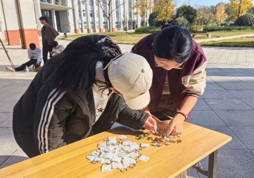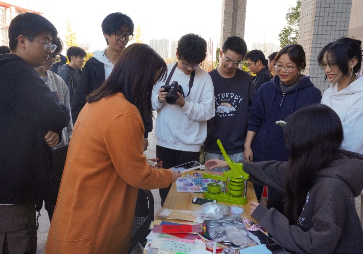 活动当天,北校区天井人声鼎沸,各班级精心准备的文创产品展示与创意市集成为了全场焦点。从风格独特的海娜手绘到各式各样的零食小吃,再到层出不穷的手工艺品,每一份作品都凝聚着设计艺术学子们的巧思与热忱,彰显了他们非凡的创意与青春的热情。师生们纷纷驻足,杨杨老师也来到同学们的摊位面前,不时与同学们交流创作灵感并且对这些摊位投以好奇的目光,深切感受到了设计艺术学院新生们的热情与风采。