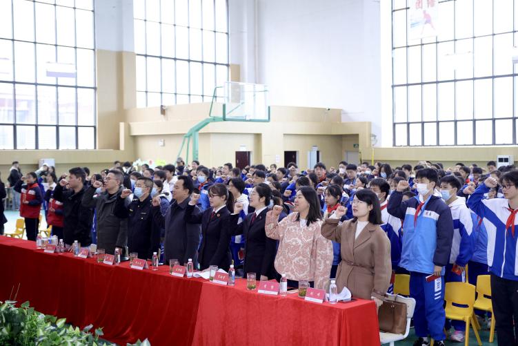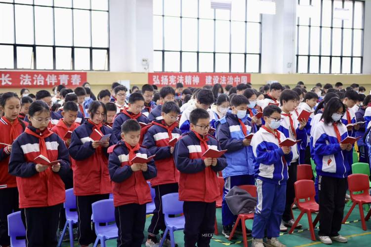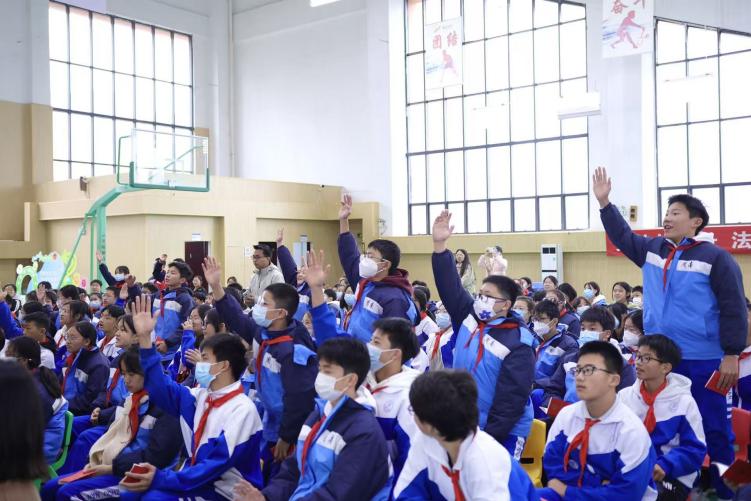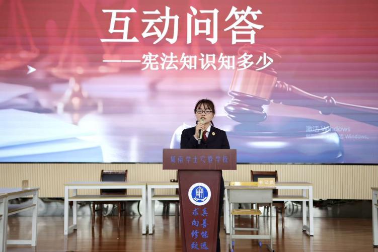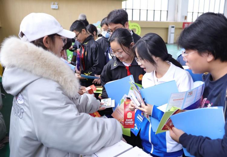 周南学士实验学校的学生代表带领全场人员举行了庄重的宪法宣誓仪式,大家以铿锵誓言表达“尊崇宪法、维护宪法”的决心。随后,大学生志愿者们协助湖南湘江新区商务和市场监管局与岳麓区人民检察院代表向在场学生发放未成年人保护宣传手册和打击非法传销的宣传资料,提醒大家重点了解“校园欺凌识别”“传销陷阱防范”等内容,推动法治知识融入同学们的日常学习生活。