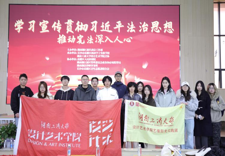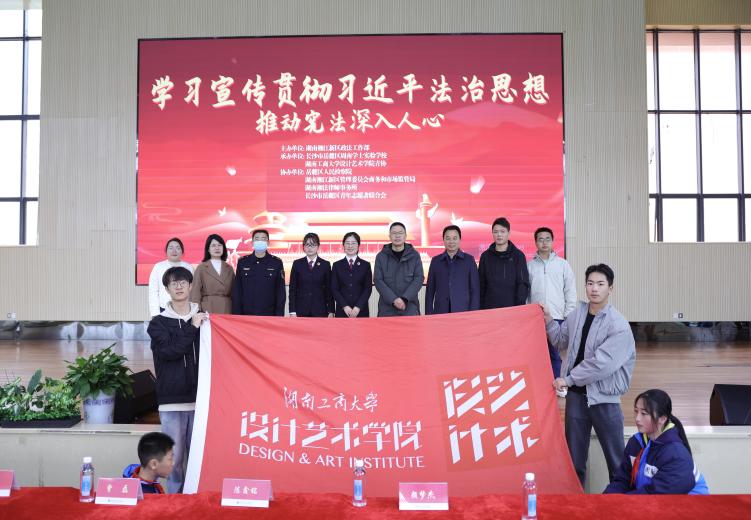 12月4日上午,由中共湖南湘江新区政法工作部主办,湖南工商大学设计艺术学院青年志愿者协会与长沙市岳麓区周南学士实验学校联合承办的“宪护湘江·青春普法”2025年国家宪法日主题宣传活动在周南学士实验学校顺利举行。湖南湘江新区商务和市场监管局、岳麓区人民检察院、湖南工商大学设计艺术学院、湖南湘法律师事务所、岳麓区青年志愿者联合会及周南学士实验学校等单位相关领导与学校师生代表200余人共同参与本次活动,湖南工商大学设计艺术学院青年志愿者协会与湖南工商大学“艺缕阳光”实践团为本次活动提供全程志愿服务支持。