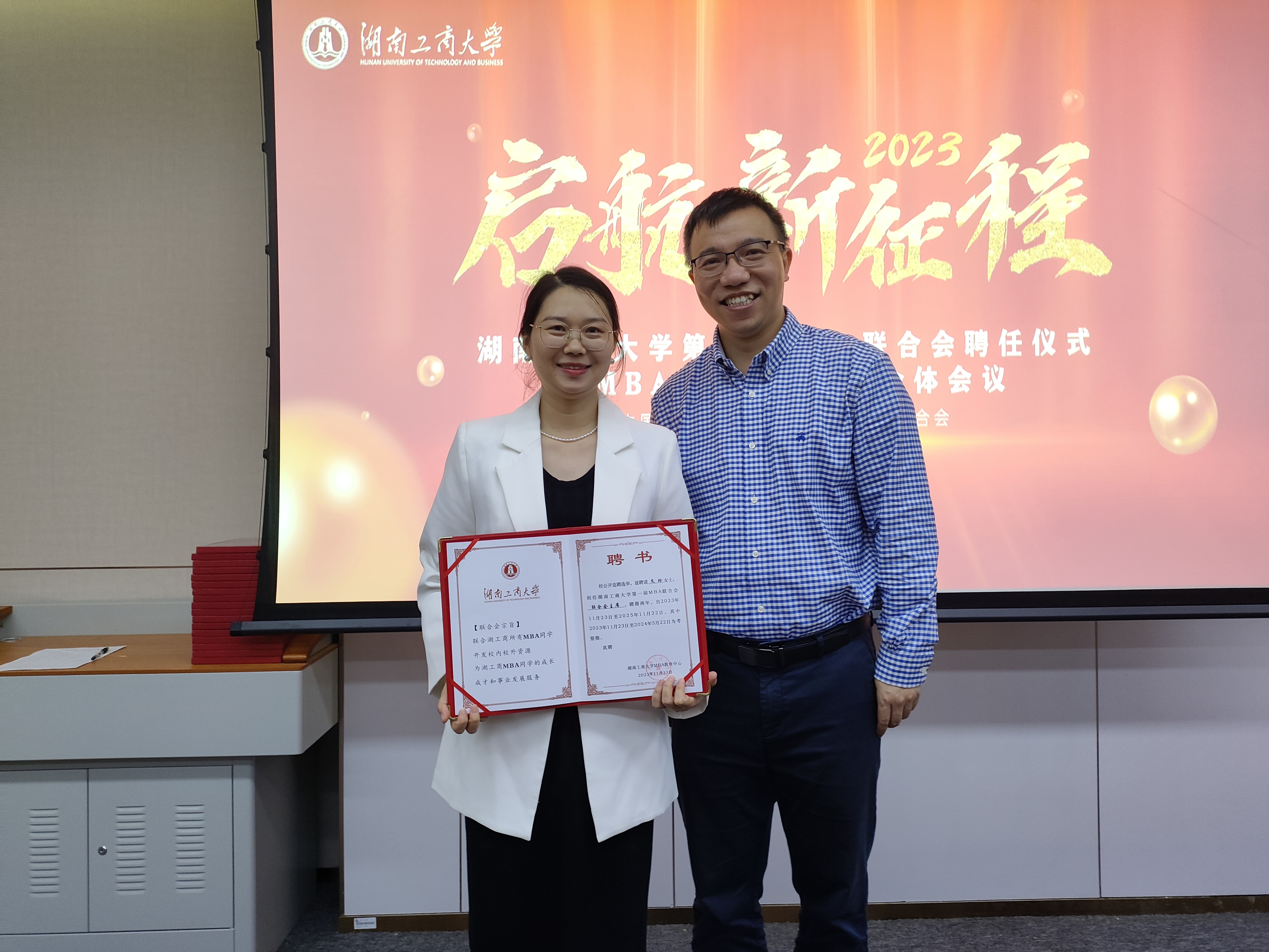 会上公布了湖南工商大学第一届MBA联合会成员名单,并为联合会学生干部颁发了聘书。