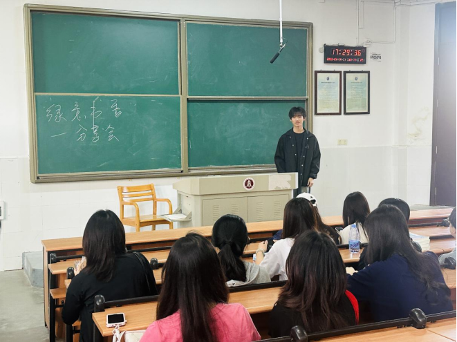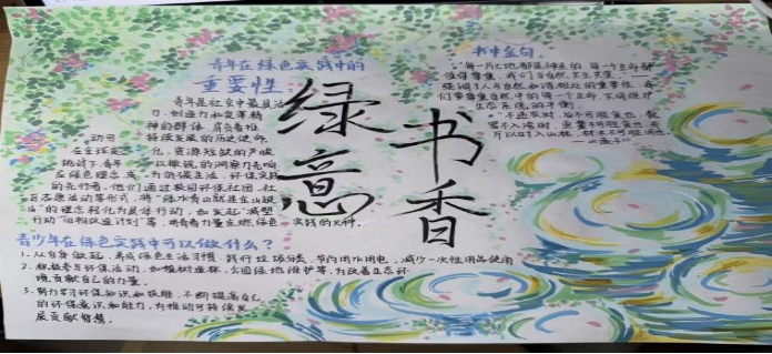 手抄报中的创意无限,色彩斑斓的画面中,既有对绿水青山的诗意描绘,又有节能减排、植树造林等绿色行动倡议,一笔一划勾勒出青年守护生态的蓝图愿景,彰显着新时代青年在生态文明建设中的主力军担当。分享会上,同学们依次上台,分享自己阅读的生态文学作品。有的同学介绍了作品的主要内容和作者的创作意图,有的则结合自身的生活经历,分享了阅读后的感悟和体会。大家畅所欲言,探讨着书中对人与自然关系的深邃洞察,反思当下生态困境,思索青年作为。