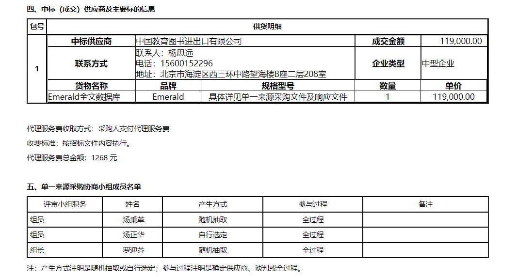 Emerald全文数据库中标(成交)公告