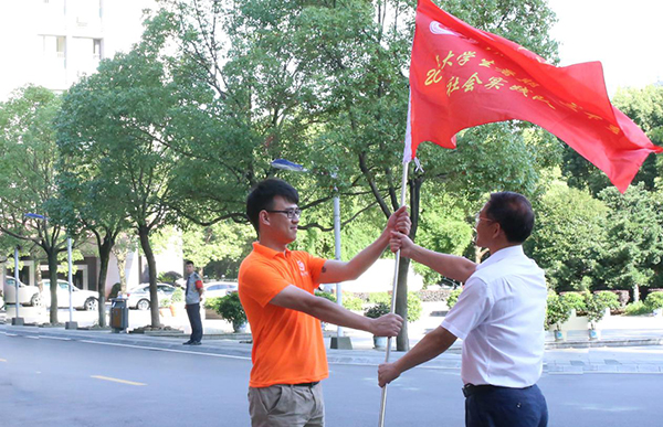 最后,唐亚阳书记将象征着“三下乡”活动的旗帜授予了学生代表楚广晗同学,并宣布2017年大学生暑期“三下乡”社会实践活动正式开始。