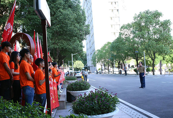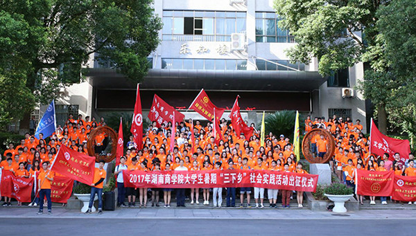 7月7日上午,我校2017年“三下乡”暑期社会实践活动启动仪式在乐知楼前举行,300多名实践团队学生代表身着橘色的队服参加了仪式。校党委书记唐亚阳、副校长曾伏秋出席仪式。