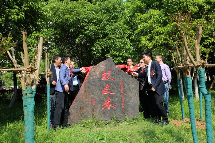 4月28日下午,由设计艺术学院校友会捐建的湖南商学院校友林落成揭牌仪式在岭南校区举行。设计艺术学院校友会执行会长蒋保荣、王献兵代表校友回校揭牌,校党委副书记夏继春,校友总会、设计艺术学院、后勤处相关负责同志出席仪式,设计艺术学院毕业生代表、学生代表参加揭牌仪式。