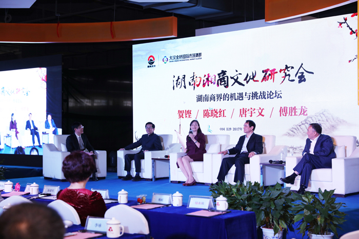 随后的小型论坛上,贺铿教授同特约嘉宾湖南商学院校长陈晓红教授、湖南省人民政府发展研究中心副主任唐宇文研究员、大汉控股集团有限公司董事长傅胜龙针对湖南商界的机遇与挑战各抒己见,共商地方经济发展大计。与会观众同嘉宾积极互动,相互论道,共谈促进湖南经济发展的新途径,并对未来湖南湘商文化研究会的发展充满期待。(文/陈娟 图/陈璐明)