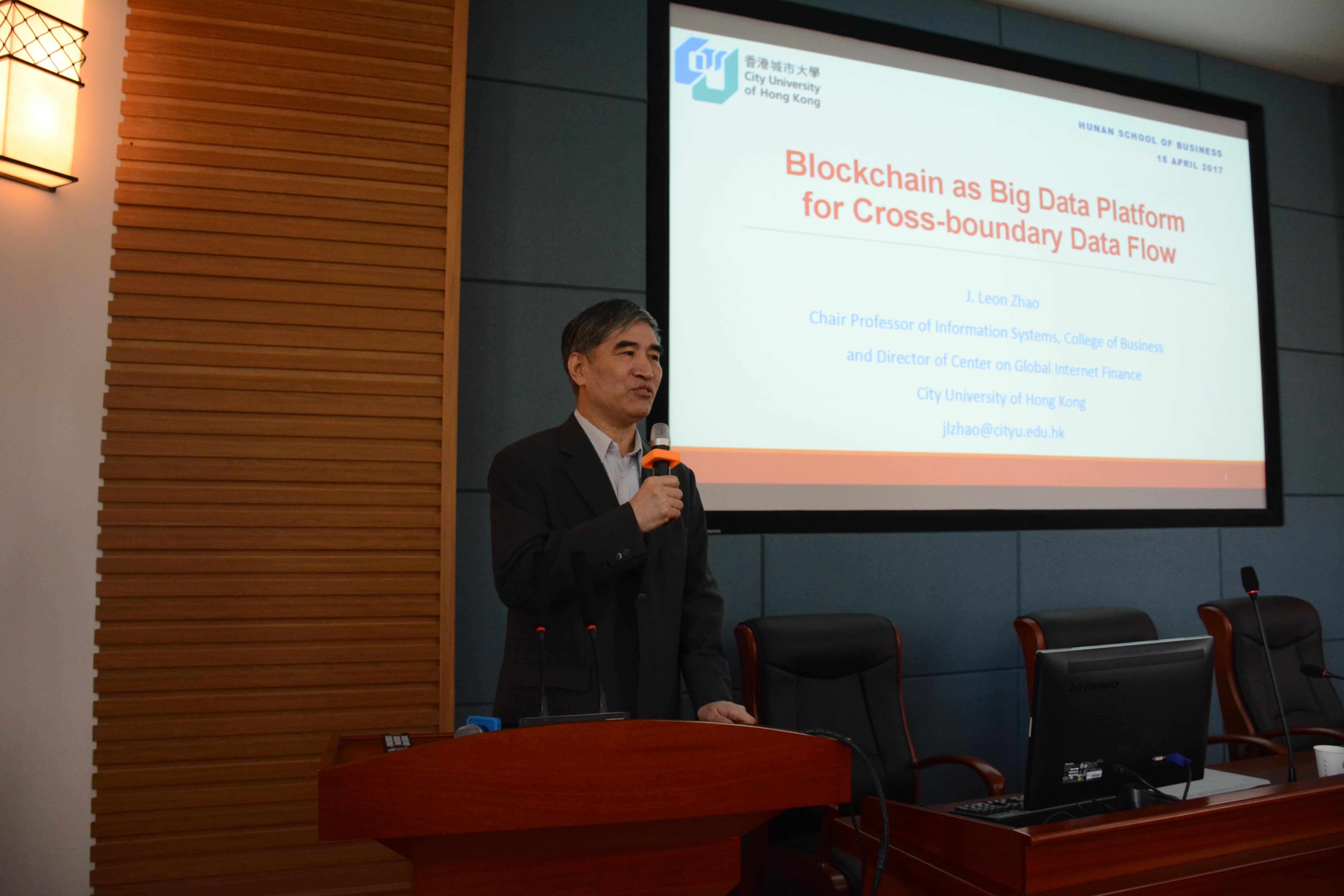 4月15日上午,香港城市大学信息系教授赵建良应邀来我校,在乐知楼F201报告厅主讲第五十三期“麓山大讲堂”。本期讲座主题为“Blockchain as Big Data Platform for Cross-boundary Data Flow”。副校长刘国权主持了讲座,我校师生和中南大学师生聆听了讲座。