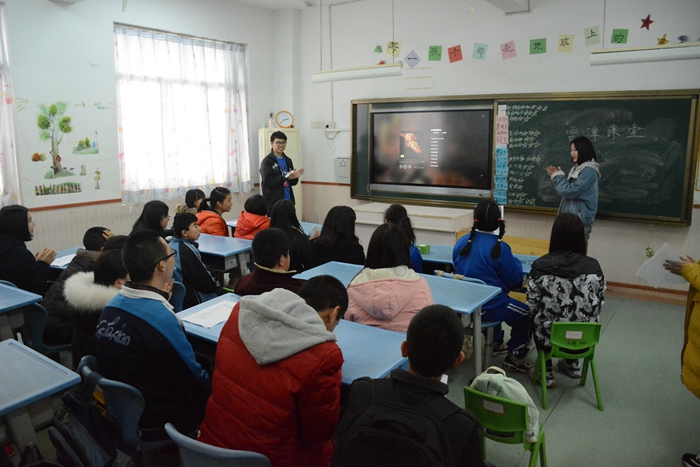 在门卫处登记过后,我们来到了会计学院青协已经“守护”了近三年的14班,这时离上课还有十分钟。孩子们和常来的干事周雨潇已经很熟悉了,一进门就缠着她要听歌,她对这一切驾轻就熟,应对自如。
