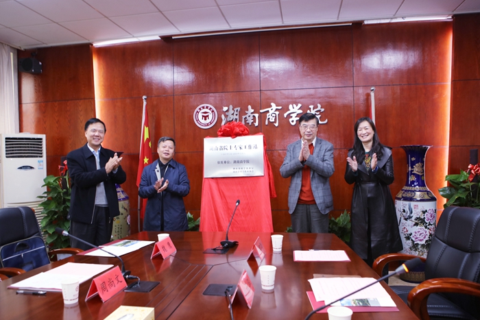 中国工程院院士刘人怀,省科技厅党组成员、副厅长贺修铭,省科学技术协会党组副书记、副主席王玉立,我校校长陈晓红共同为湖南商学院院士专家工作站揭牌。