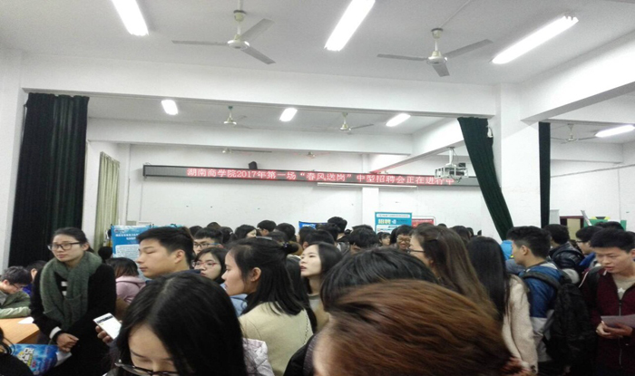 春风送岗,暖意浓浓。为保障我校2017届毕业生充分就业,3月7日下午,我校招生就业指导处在实验楼一楼招聘会场为2017届毕业生举办了湖南商学院2017年第一场“春风送岗”中型招聘会。