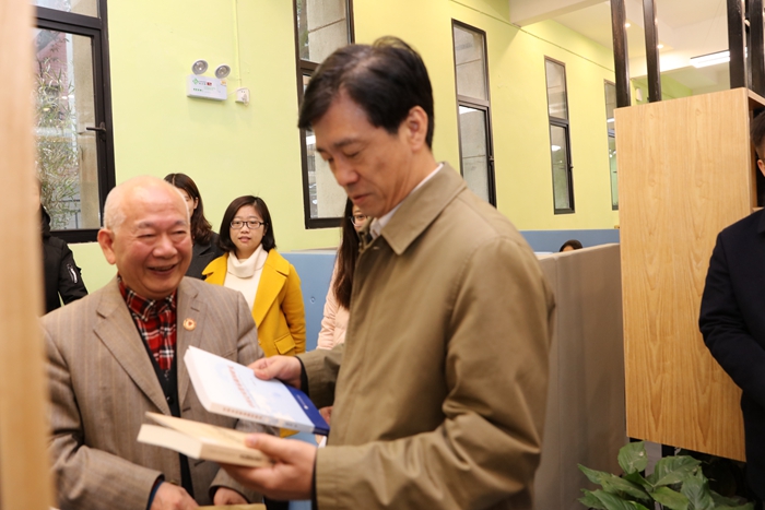 在贤德创客书院,蔡振红考察了书院集阅读、学习、创新、创业、创意等多功能于一体的情况,看到同学们正在书院报告厅分享寒假期间赴各地宣讲党中央治国理政新理念新思想新战略的心得体会,他对学校创新开展思想政治教育工作的途径和方法表示了充分肯定。蔡振红强调,要充分认识做好高校思想政治工作的重大意义,重视思想政治工作队伍建设,切实履行好肩负的职责使命。