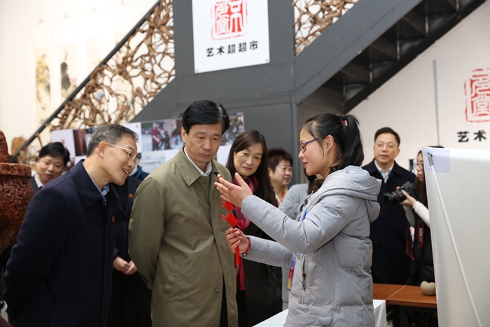 在创客工场、大学生创意集市,当蔡振红了解到,学校对创客工场的学生团队均给予免费入驻时,对我校积极鼓励并扶持学生开展创新创业表示赞赏。我校是全国创新创业改革百所示范校、全国高校实践育人创新创业基地之一,“大学生创意集市”是我校打造的全国大学生创意交易平台,属全国首创。蔡振红指出,学校的文化氛围很好,特别是为学生创新创业教育营造了良好的环境,对于激发大学生创新创业思维发挥了积极作用。他希望,学校进一步发挥优势,营造实践育人氛围,坚持把立德树人作为中心环节,不断开创高校思想政治工作新局面。