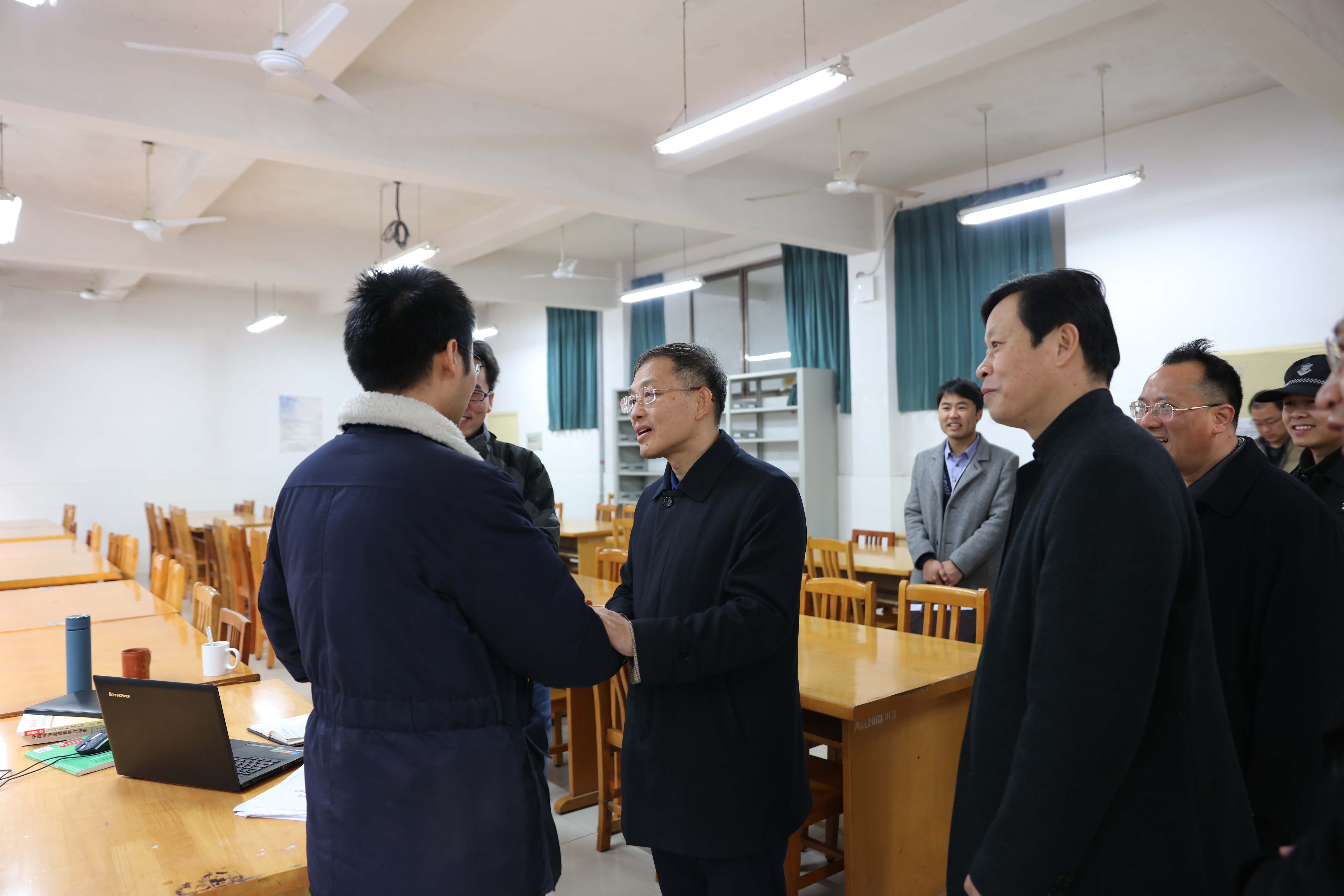 校领导一行先后来到校园监控值班机房、各教学楼和办公楼值班室、各学生公寓值班室、各保卫治安门卫值班室、水电中心、医务室、收发室、岭南校区、北校区等处,为坚守岗位的工作人员送上新春的祝福,感谢他们在万家团圆的时刻为保学校安全、祥和付出的努力。在乐知楼自习室,还有留校的研究生在学习,唐亚阳书记与他们亲切交流,了解他们的学习生活情况,并为他们刻苦学习的精神点赞,希望他们劳逸结合,为新学期做好各方面的准备。