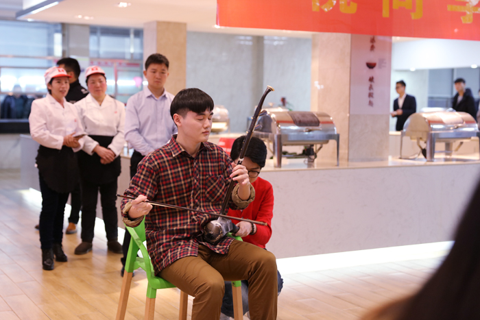 大学生艺术团及留校学生代表精心准备的节目表演,让这个阳光明媚的日子变得更加暖意融融。拉丁舞、二胡独奏、《告白气球》对唱还有外国友人版的《新年快乐》使得现场温馨热闹,掌声不断。吴勇老师演唱《我爱我的祖国》更是把现场气氛推向了高潮。