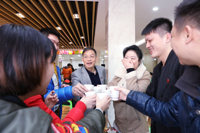 盛世鸡鸣犹悦耳,新春燕舞自开心。1月21日是我国农历小年,校党委书记唐亚阳,副校长曾伏秋、刘国权,校党委委员、党政办主任杨良奇一行在楚枫轩与332名留校学生欢聚一堂,共贺新年。