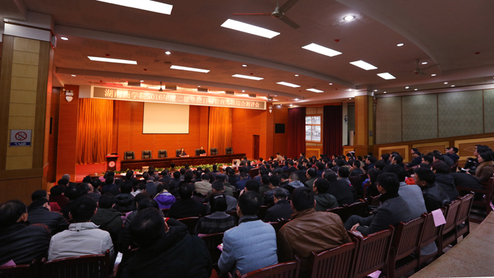 1月9日、10日,学校2016年度二级单位目标管理考核综合测评会在图书馆多功能报告厅召开。全体在校校领导出席测评会,会议由副校长彭进清主持。全体副处级以上干部,各二级学院教授、博士代表,各二级非教学单位教职工代表参加测评会。