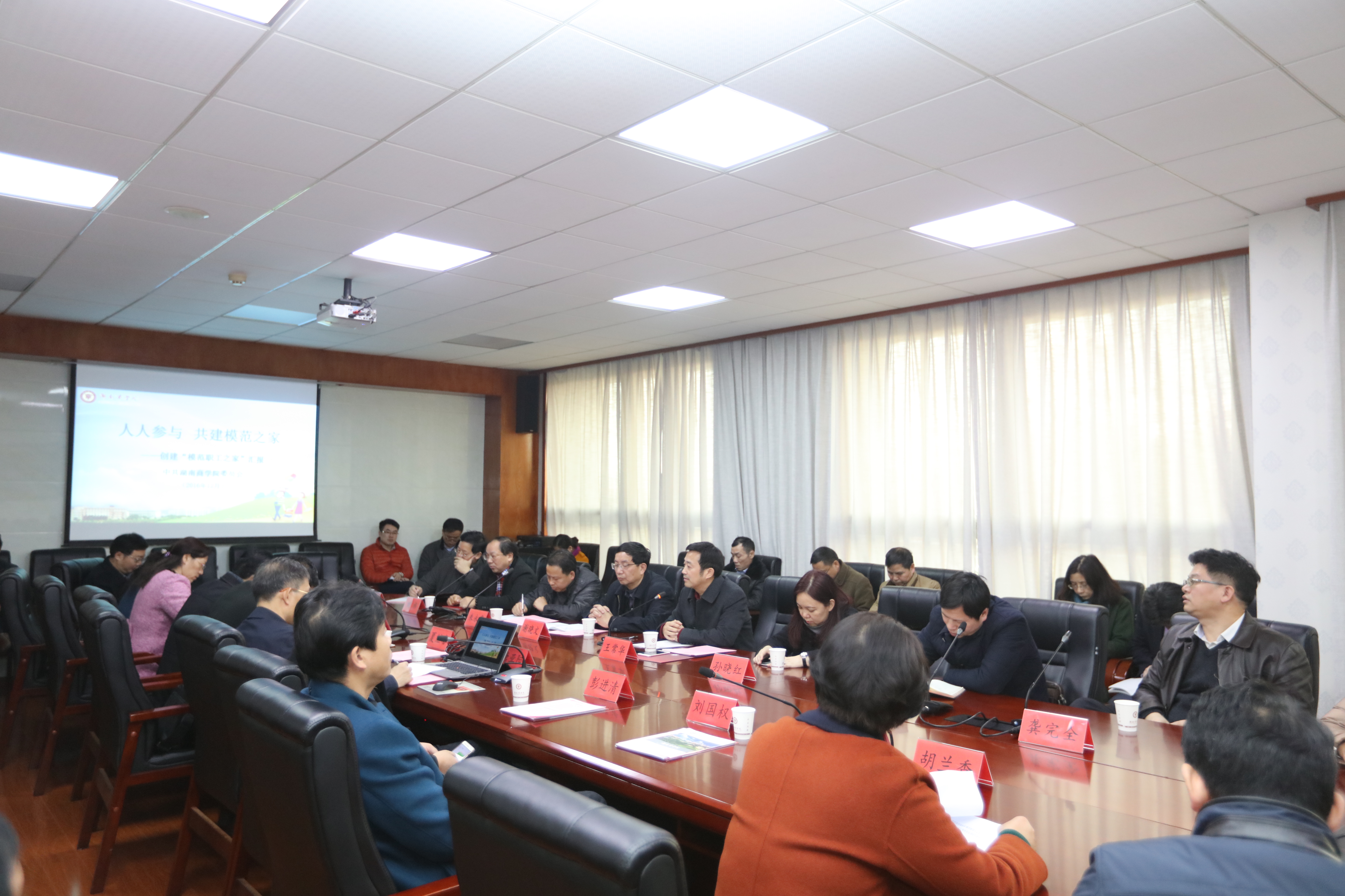 根据我校工会的申报,12月22日上午,由省教育工会副主席王常华任组长的考核验收组一行十人到我校进行“湖南省模范教职工之家”考核验收。校党委书记唐亚阳,校党委副书记、工会主席夏继春,副校长彭进清、曾伏秋、刘国权出席汇报会。校工会、党政办公室、党委组织部、党委宣传部、人事处、财务处负责人及学校各分工会主席参加了会议。汇报会由考核验收组组长王常华主持。