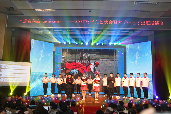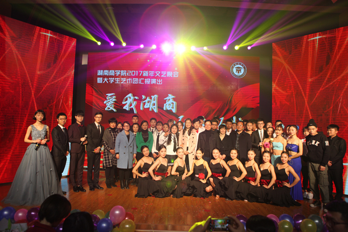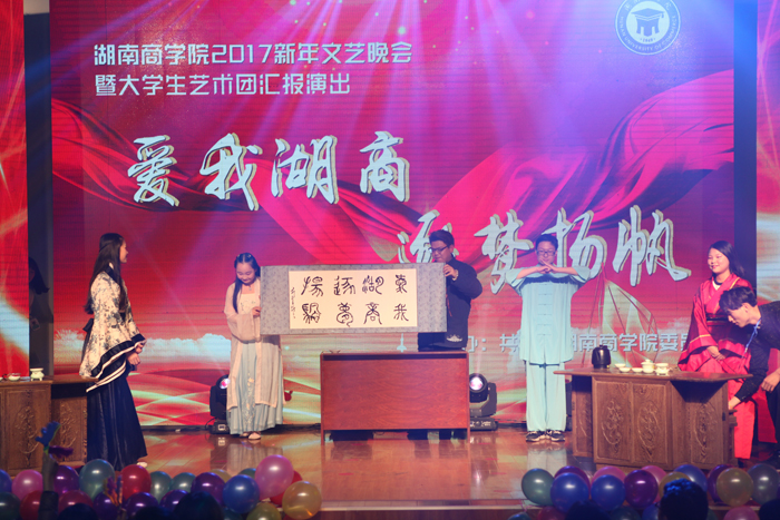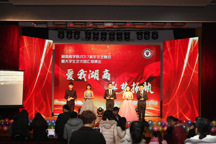 12月17日晚,湖南商学院2017新年文艺晚会暨大学生艺术团汇报演出在大礼堂举行。此次晚会以“爱我湖商,逐梦扬帆”为主题,由共青团湖南商学院委员会主办。
