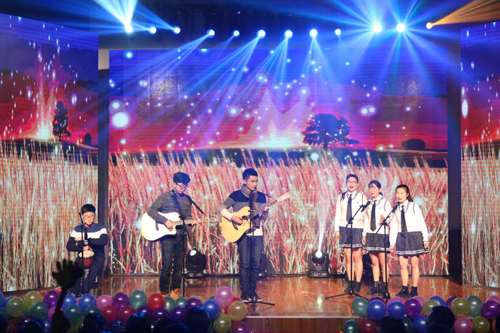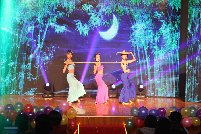伴着健美操《逐梦湖商》活力四射地表演,新年文艺晚会正式拉开序幕。晚会节目丰富精彩,取自《江姐》的民族舞《绣红旗》讲述了一代又一代的年轻人追求民族崛起、国家独立的赤子之心;朗诵表演《以厚德载物,建文明校园》以激昂的声音歌颂了学校基层员工对校园建设做出的贡献,表达出湖商学子对校园未来的美好期许。聪明果敢美猴王,一招一式都是非物质文化遗产的传承;夺人眼球的魔术,独特的傣族舞,倾情演绎的《湖商版南山南》,青春洋溢的吉他弹唱,气势磅礴的《阳光路上》……引发观众阵阵掌声。