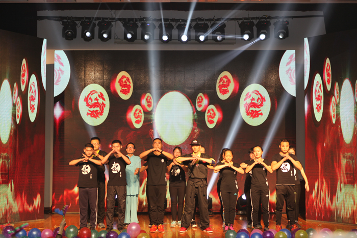 校党委书记唐亚阳与校长陈晓红同台表演。太极舒展大方,刚柔相济,歌唱清亮优美,寓意深长,现场气氛瞬间被引爆。