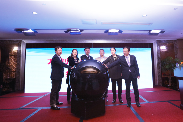 在北京万创聚力首席专家邱善勤对万创中国·湘江中心项目进行简单介绍后,“万创中国·湘江中心”正式揭牌。