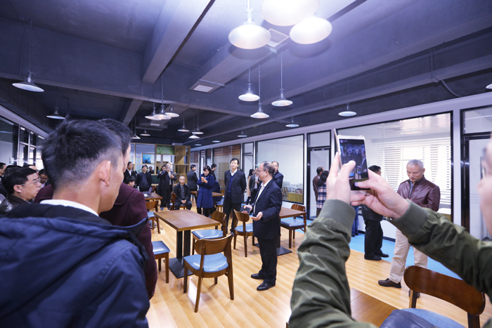 当日下午,与会嘉宾和校友企业家们一同参观了我校贤德创客书院、岭南创意坊、不多堂、创客工场、创客中心;详细考察了洋湖创富中心、学士路创新创业走廊、园区规划展示馆、检验检测认证总部基地、联东U谷、大学生科技园创业服务中心。