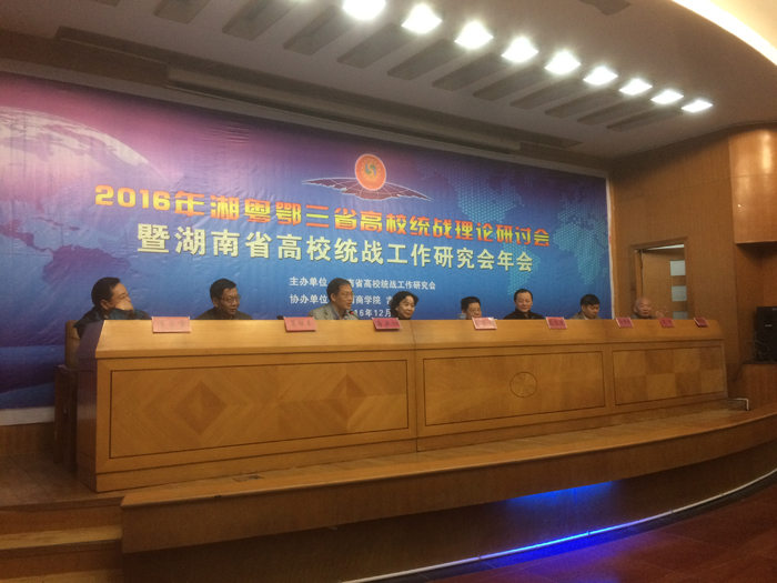 12月1日—2日,由湖南省高校统战工作研究会主办、吉首大学与我校承办的湘粤鄂三省高校统战理论研讨会在吉首大学举行。湖南省委统战部副部长胡东风,湖南省教育厅党组成员、工委委员陈飞跃,我校党委书记唐亚阳,吉首大学校长白晋湘,湖南省人民政府参事、我校一级荣誉教授柳思维,暨南大学党委副书记、纪委书记夏泉,长江大学党委常委、副校长兼统战部长李家宝等领导出席会议。湖南、湖北、广东三省高校统战工作相关人员参会。会议由湖南省高校统战工作研究会会长、我校党委副书记夏继春主持。