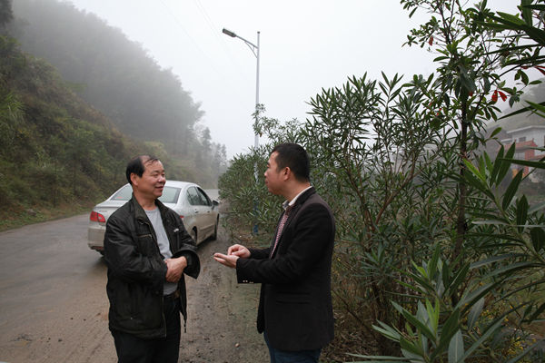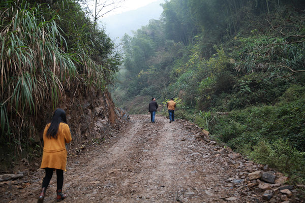 14:00,吃过午饭,工作队来到兴家林场,察看林道项目建设进展。这条林道计划修建10公里(含3公里硬化),计划投资140万元,打通兴家和东岳两个集体林场,盘活300亩高山优质耕地和2000余亩楠竹山地。“路通了,土地就可以以更高价格流转,楠竹运输成本会大大降低,村民收入就可以增加了。”
