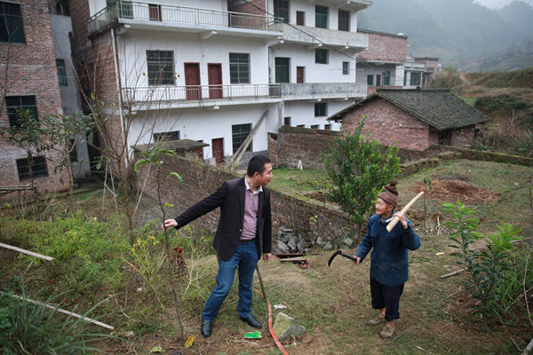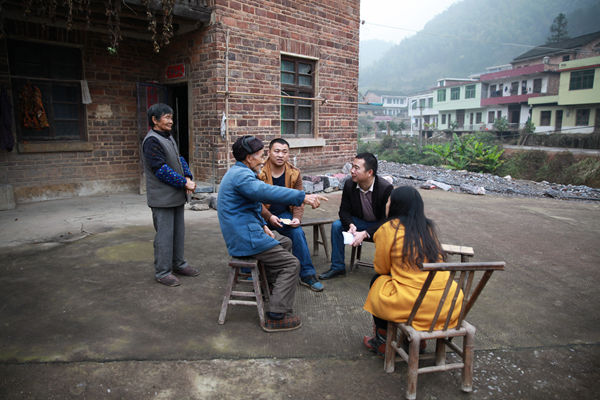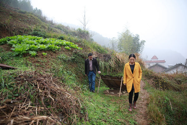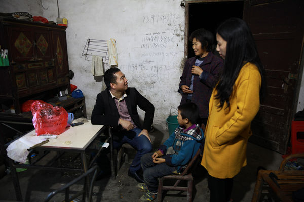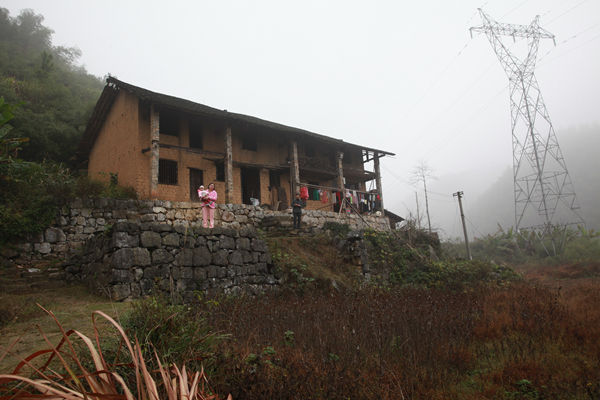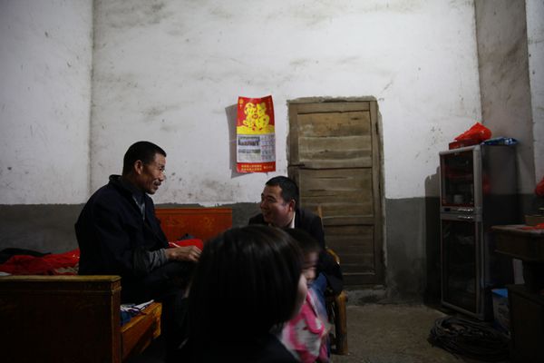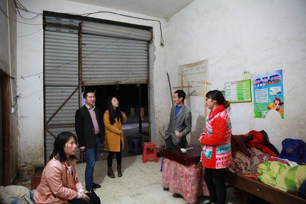 10:20,经过半个小时的交谈,工作队进一步核实了刘宽宏家的具体情况,拟报上级政府纳入危房改造全额资助户,按照60平方米的建筑面积新建,每平国家补助800元,共计48000元;并力争今年年底将通户公路修至该户门口。周军军嘱咐刘宽宏赶快递交同组全体村民签字的危房改造申请,图为刘宽宏的妻子和女儿站在屋前,目送工作队离开,不停表示感谢。