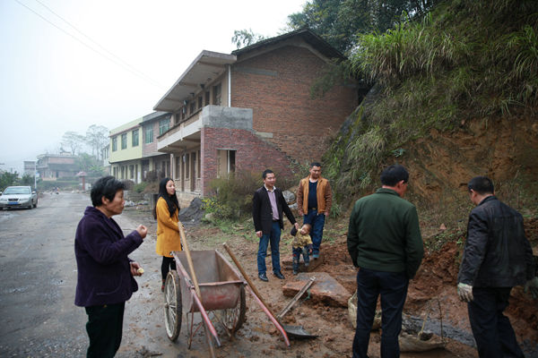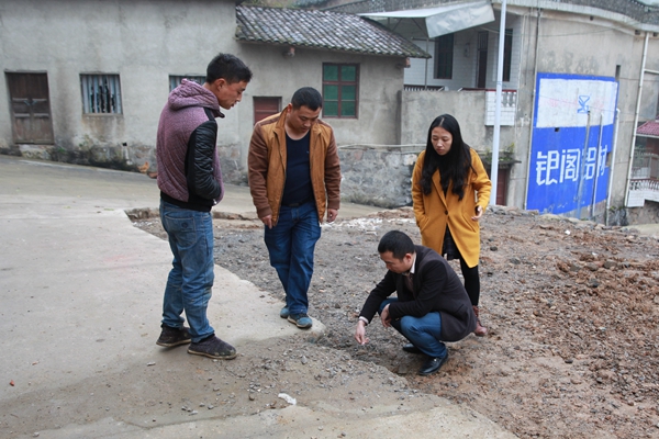 17:10,工作队到村民13组黄青娥家走访,因为拟建的新机耕道要经过其房子前坪。“三叔”石慎微告诉工作队,坪与下面的田有3米落差,不能过车,最好是从田里再把路基砌上来,但这要占用村民孙新国弟弟的田,工作难度非常大。