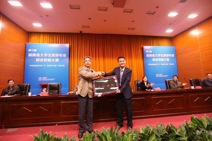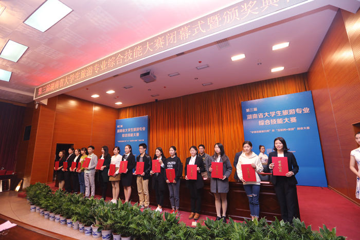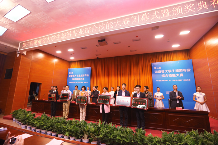 闭幕式上,省教育厅葛建中副厅长指出,全省大学生旅游专业综合技能大赛作为省教育厅举办的学科竞赛活动,在全省高校的共同努力和相关旅游学界业界的支持配合下,已经成为高校间相互交流教学经验、相互展示教学成果的重要平台,也日益成为校企合作,产学互动的重要平台。他表示,本届大赛不仅赛出了水平,也赛出了风格。大赛的“互联网+旅游”主题不仅与中央精神、我省旅游新业态也高度契合,同时也与大学生创业高度契合。旅游强省是湖南省委省政府提出的新时期旅游管理目标,为实现旅游业的持续健康稳步发展,旅游专业的人才培养是重要基础。他希望,全省高校通过竞赛活动平台,能够认真学习兄弟学校的经验,寻找自身存在的差距和不足,不断更新旅游人才教育理念,积极探索社会合作与人的机制,突出实践教学、强化能力训练、加强对旅游专业人才的培养,为我省建设旅游强省贡献力量。