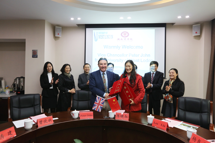 陈晓红校长在欢迎辞中代表学校对Peter John校长一行的来访表示欢迎,并感谢西伦敦大学在今年6月我校代表团访问期间的热情接待。陈晓红校长指出,当前我校已向上级主管部门递交了中英合作会计学项目的申报材料,获批后该项目将大有潜力、大有可为。她预祝中英合作办学会计项目取得圆满成功,祝愿两校友谊长存,并希望两校未来能在更多的领域开展更深入的合作和交流。