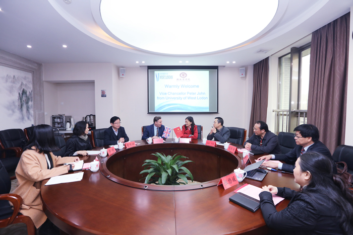 Peter John 校长对学校的热情接待与友好合作表示感谢,并介绍了西伦敦大学的概况和办学特色。他说:“为了该项目的顺利推进,你们做了大量充分的准备工作,我对该项目的顺利获批充满信心。刚才我去教室看了中美合作金融学项目的同学们,他们素质非常好,都很优秀,这也更加坚定了我对贵校合作办学项目的信心。”